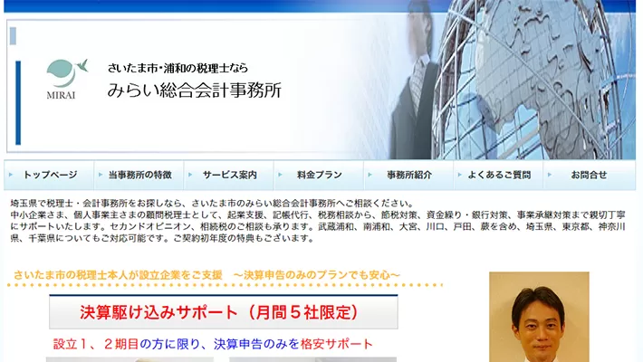 | 取扱業務 | 税務顧問、経理・決算、資金調達、確定申告、税務調査、相続税対策、M&A・事業承継、会社設立、助成金・補助金、給与計算、企業・会社設立、記帳代行、融資・資金繰り対策、セカンドオピニオン |
